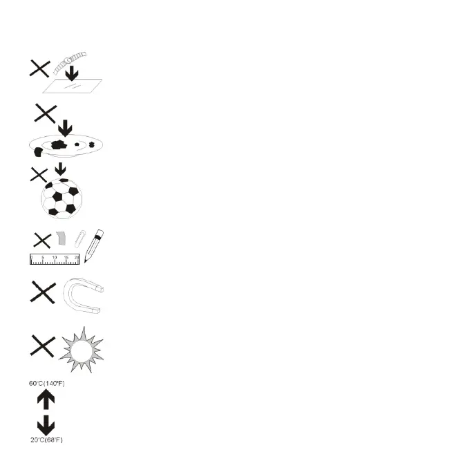 1. DO NOT place objects on top of the device, as objects may scratch the