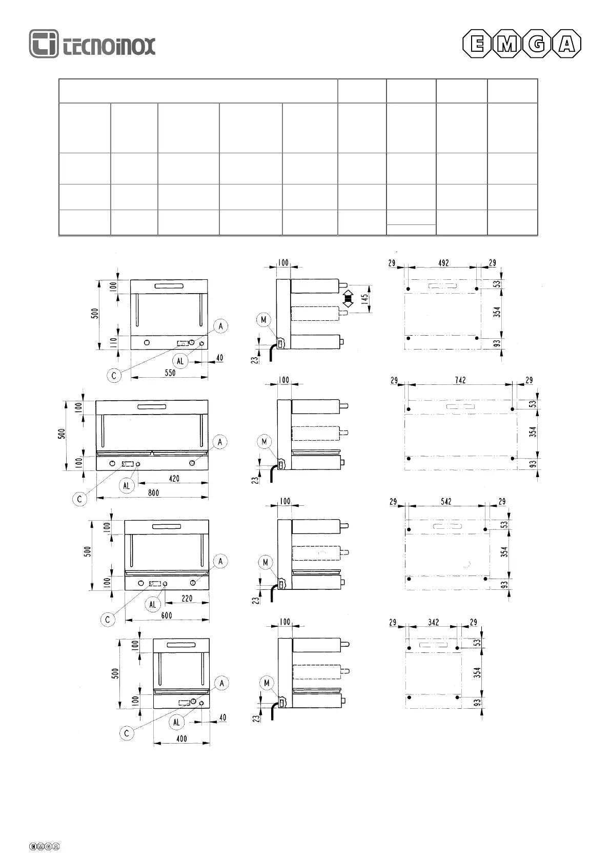 piano cottura dimensions Kochplatte plaque de cuisson plano de cocción 400x350 600x350 800x350 550x350