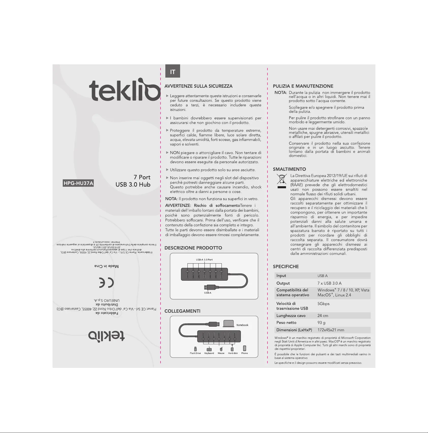 Olvassa el alább 📖 a magyar nyelvű használati útmutatót TEKLIO HPG-HU37A (2 oldal) a usb-hub kategóriában. Ezt az útmutatót 15 ember találta hasznosnak és 8 felhasználó értékelte átlagosan 3.9 csillagra