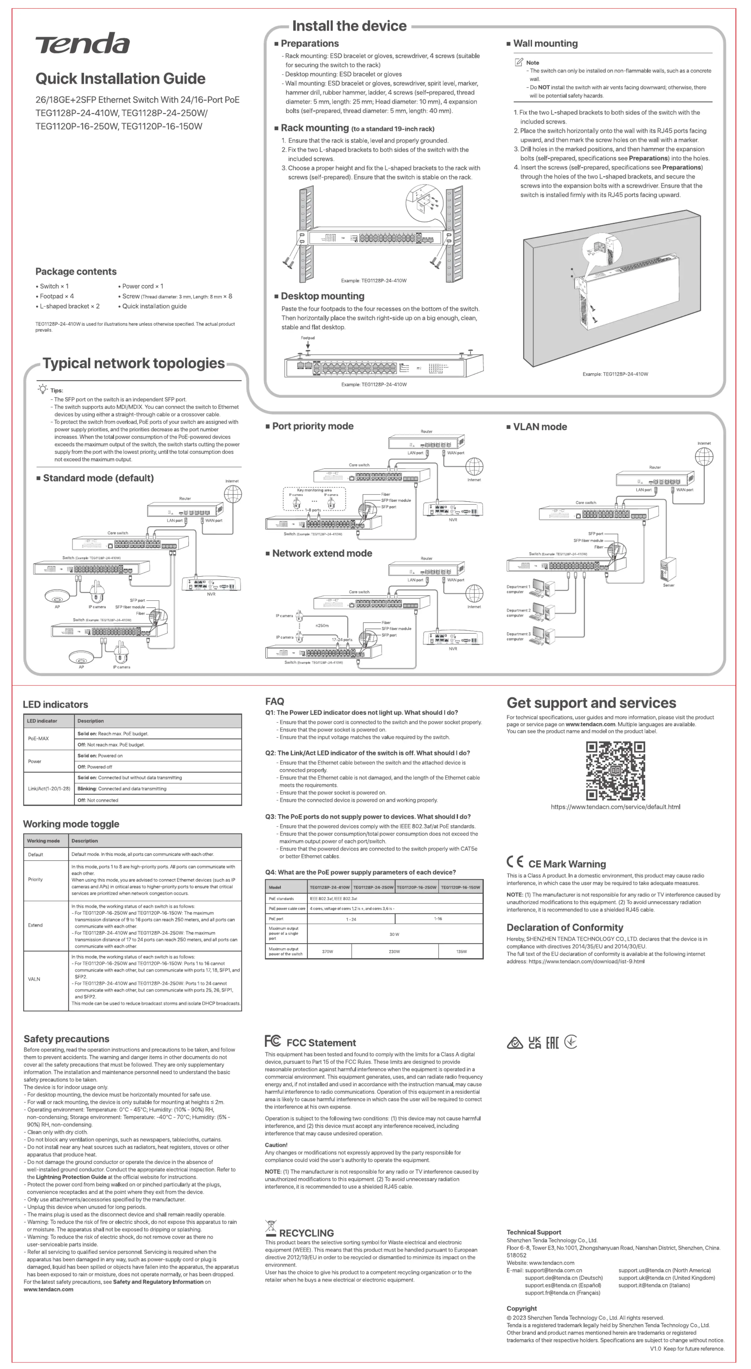 Olvassa el alább 📖 a magyar nyelvű használati útmutatót Tenda TEG1128P-24-410W (1 oldal) a kapcsoló kategóriában. Ezt az útmutatót 7 ember találta hasznosnak és 4 felhasználó értékelte átlagosan 4.6 csillagra