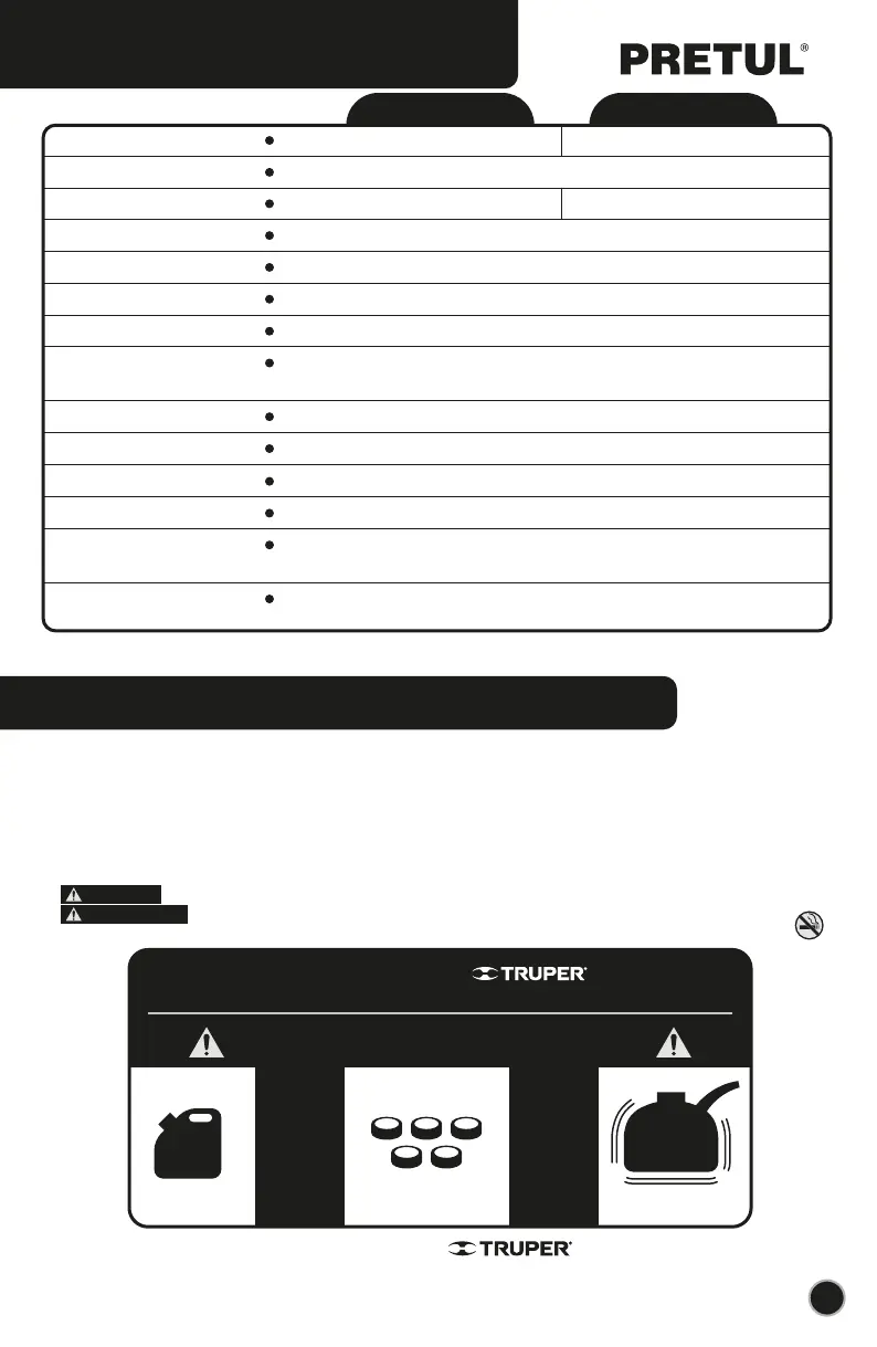 • No use ningún tipo de gasolina premezclada con aceite adquirida en gasolineras, como la destinada a motocicletas.