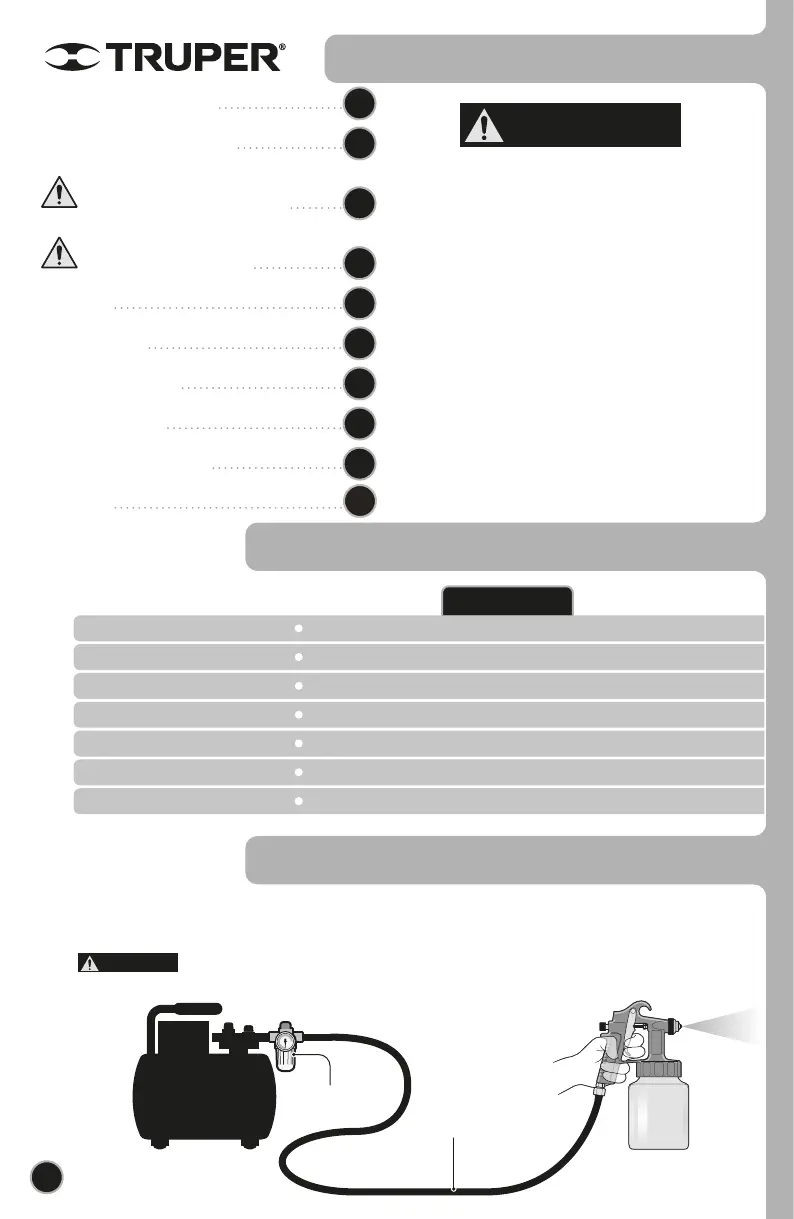 en la superficie a pintar. Se recomienda instalar un filtro regulador entre el compresor y la pistola para evitar esta posibilidad.