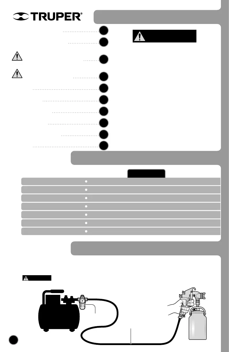 en la superficie a pintar. Se recomienda instalar un filtro regulador entre el compresor y la pistola para evitar esta posibilidad.