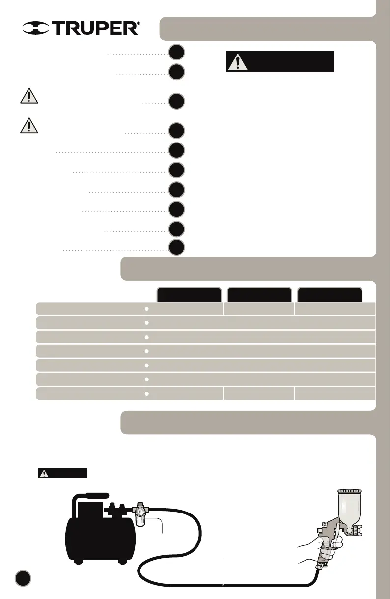 Olvassa el alább 📖 a magyar nyelvű használati útmutatót Truper PIPI-420 (20 oldal) a festékszóró kategóriában. Ezt az útmutatót 11 ember találta hasznosnak és 6 felhasználó értékelte átlagosan 4.8 csillagra