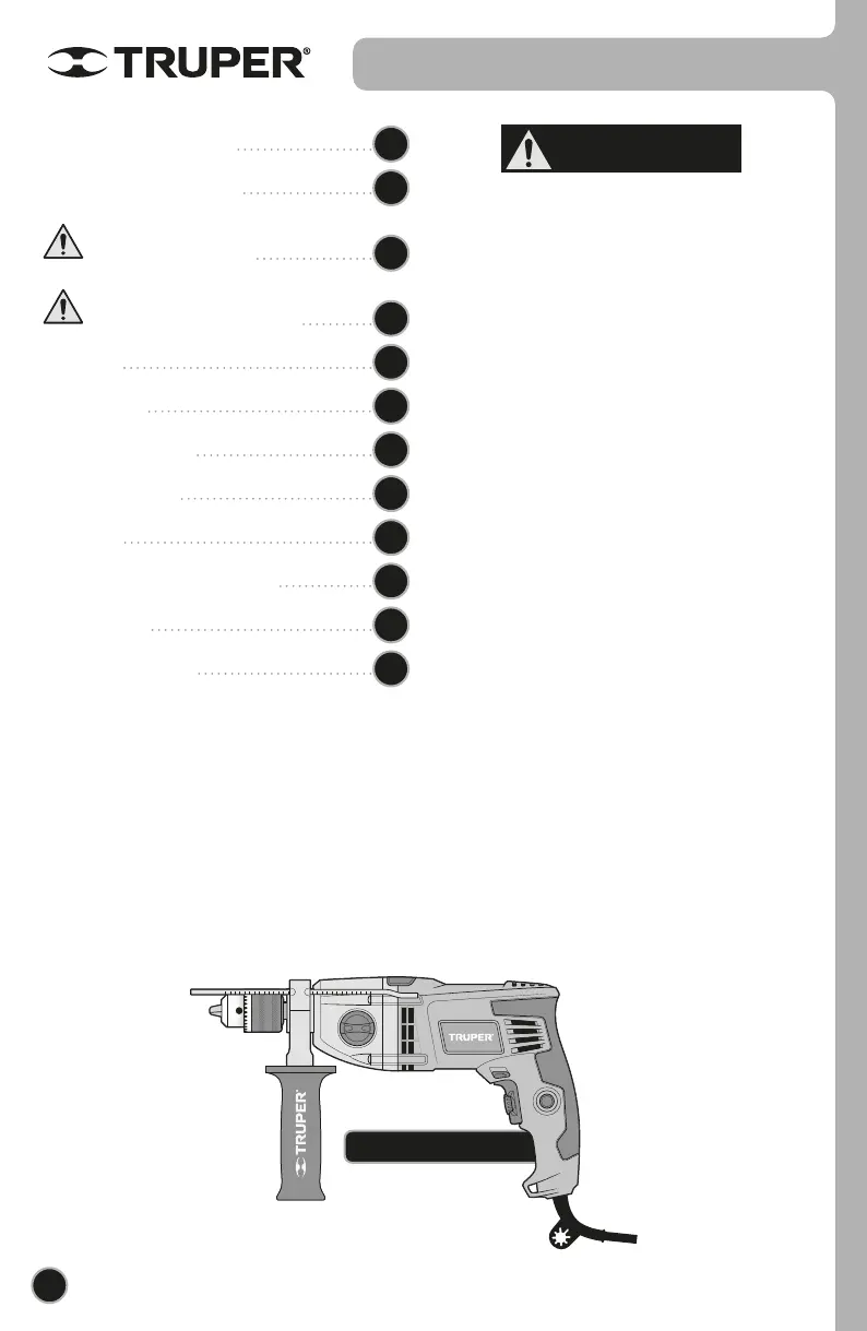 Olvassa el alább 📖 a magyar nyelvű használati útmutatót Truper ROTO-1/2N7 (24 oldal) a fúrógép kategóriában. Ezt az útmutatót 16 ember találta hasznosnak és 8.5 felhasználó értékelte átlagosan 4.0 csillagra