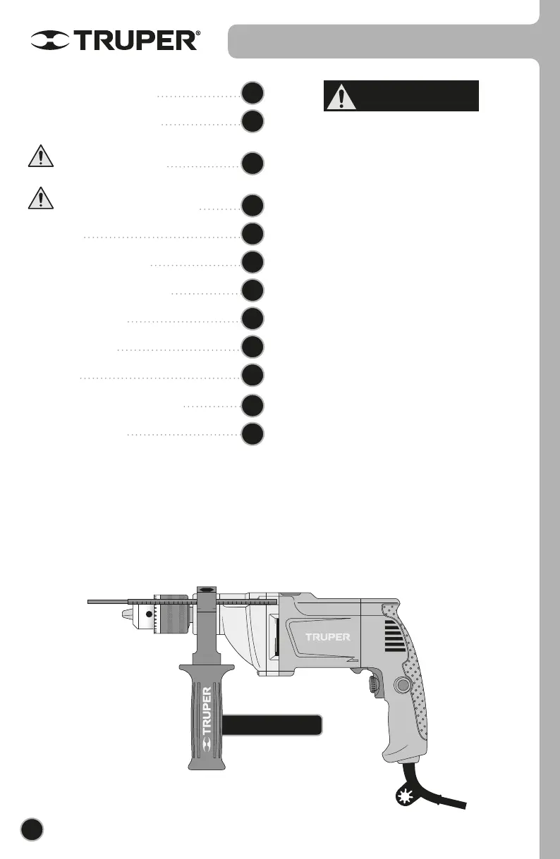 Olvassa el alább 📖 a magyar nyelvű használati útmutatót Truper ROTO-1/2N8 (24 oldal) a fúrógép kategóriában. Ezt az útmutatót 14 ember találta hasznosnak és 7.5 felhasználó értékelte átlagosan 4.8 csillagra