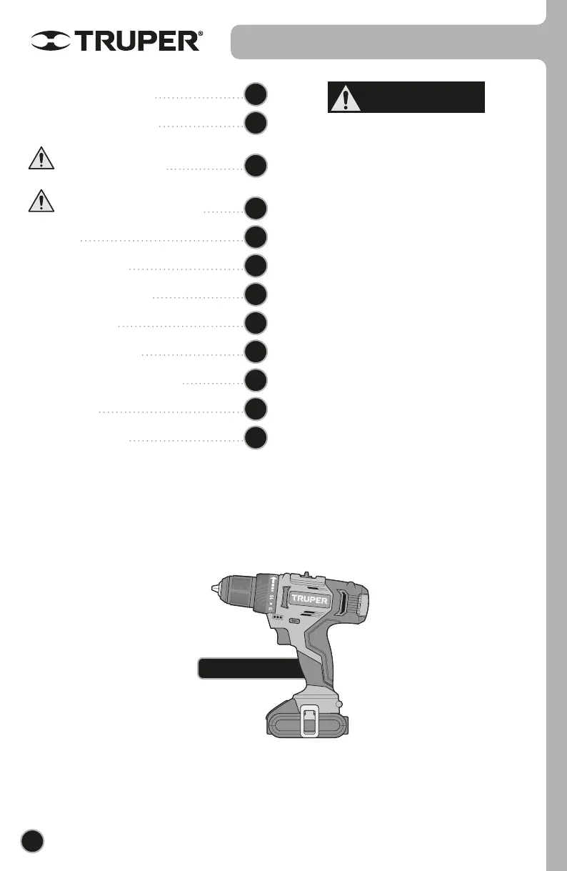 Olvassa el alább 📖 a magyar nyelvű használati útmutatót Truper TALI-18A2 (24 oldal) a fúrógép kategóriában. Ezt az útmutatót 13 ember találta hasznosnak és 7 felhasználó értékelte átlagosan 4.1 csillagra