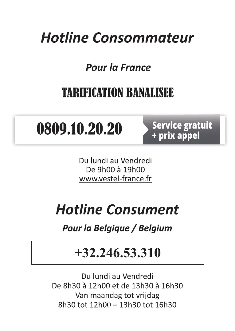 MISE EN GARDE : POUR ÉVITER TOUT RISQUE DE CHOC