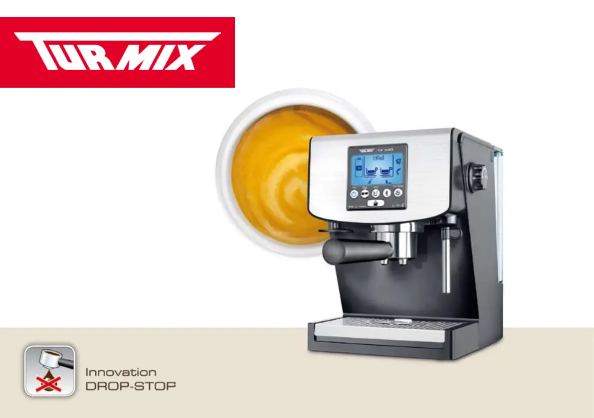 Olvassa el alább 📖 a magyar nyelvű használati útmutatót Turmix TX 540 (16 oldal) a Espresso gép kategóriában. Ezt az útmutatót 18 ember találta hasznosnak és 9.5 felhasználó értékelte átlagosan 4.5 csillagra