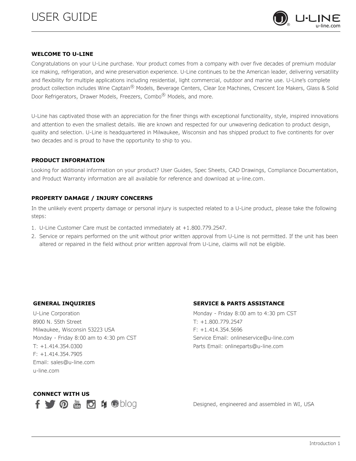 and Product Warranty information are all available for reference and download at u-line.com.