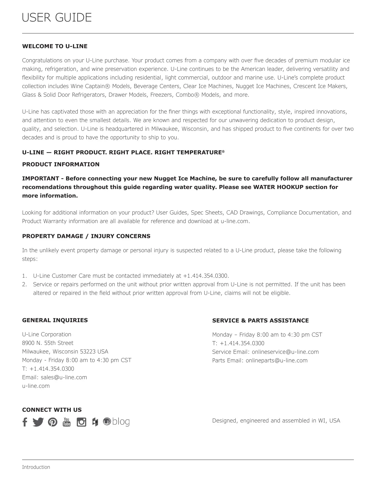 Congratulations on your U-Line purchase. Your product comes from a company with over ve decades of premium modular ice