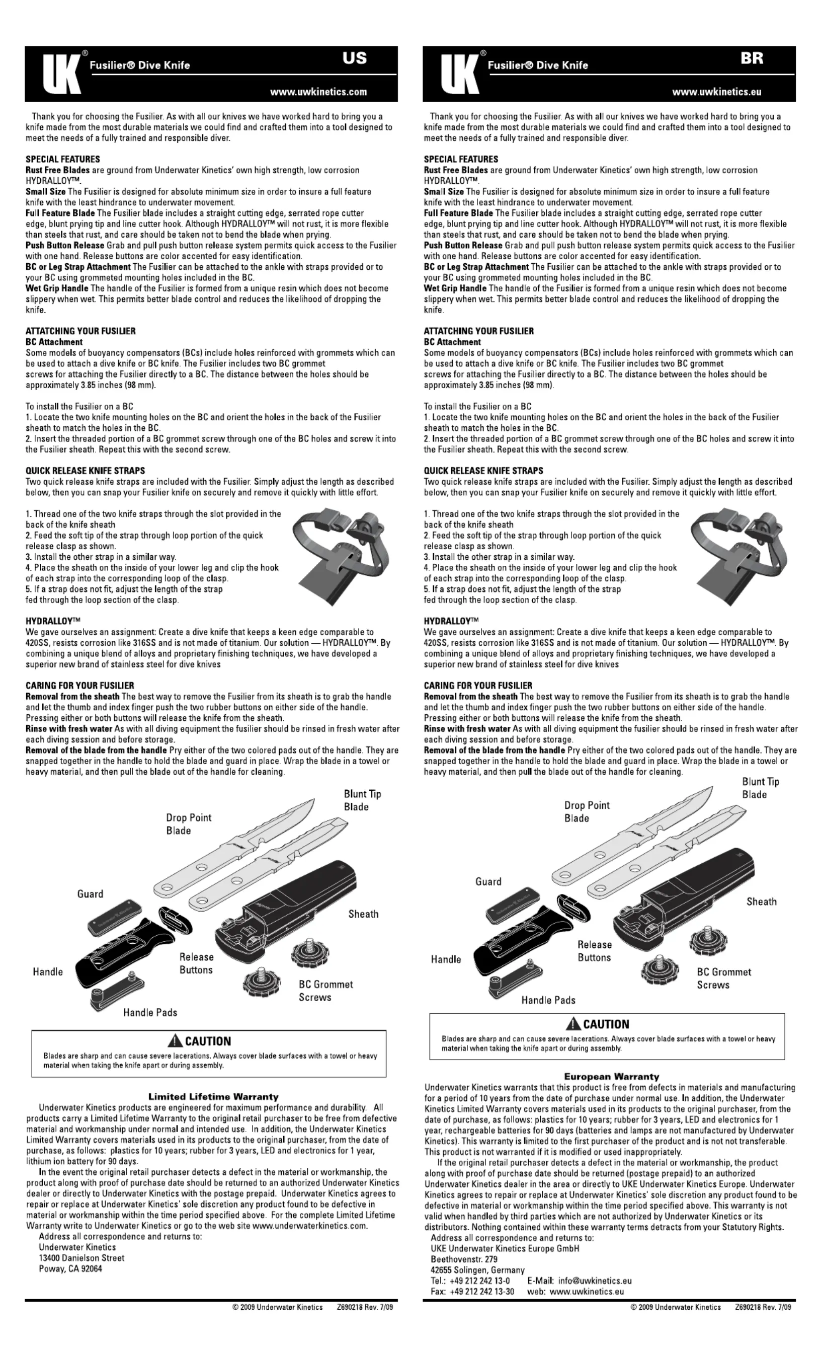 Olvassa el alább 📖 a magyar nyelvű használati útmutatót Underwater Kinetics Fusilier Hydralloy (1 oldal) a Mi kategóriában. Ezt az útmutatót 14 ember találta hasznosnak és 7.5 felhasználó értékelte átlagosan 4.7 csillagra