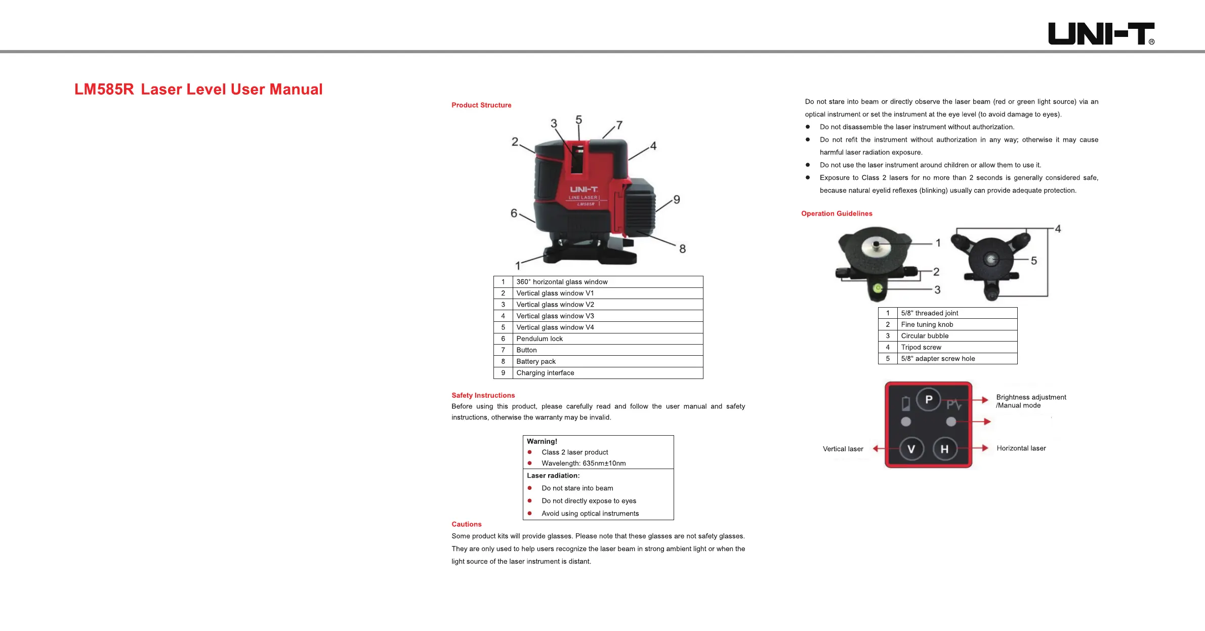 Olvassa el alább 📖 a magyar nyelvű használati útmutatót Uni-T LM585R (2 oldal) a lézeres mutató kategóriában. Ezt az útmutatót 12 ember találta hasznosnak és 6.5 felhasználó értékelte átlagosan 4.7 csillagra