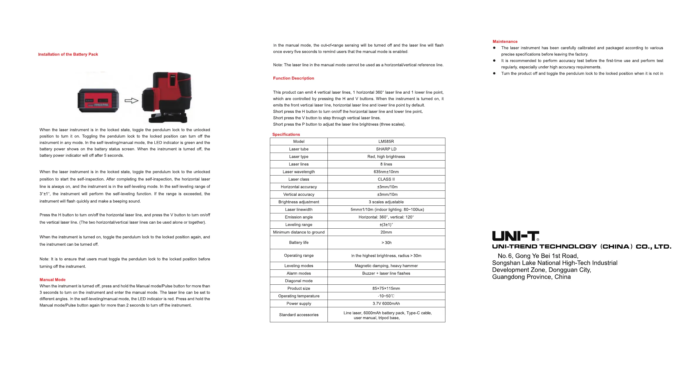 Thank you for purchasing this brand new LM585R laser level. In order to use this product
