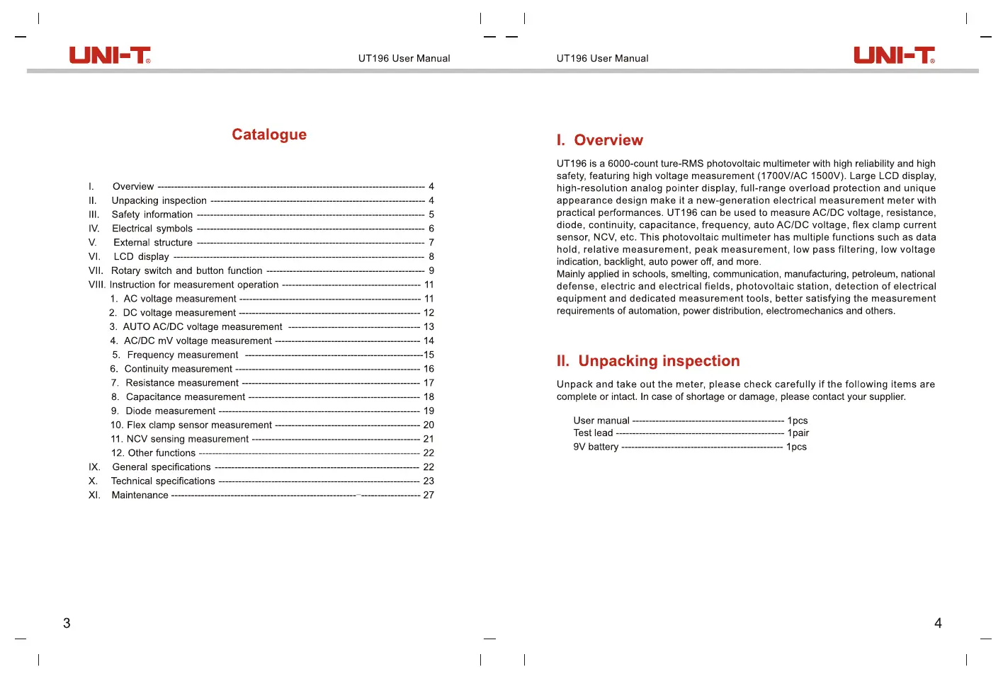 Használati útmutató Uni-T UT196