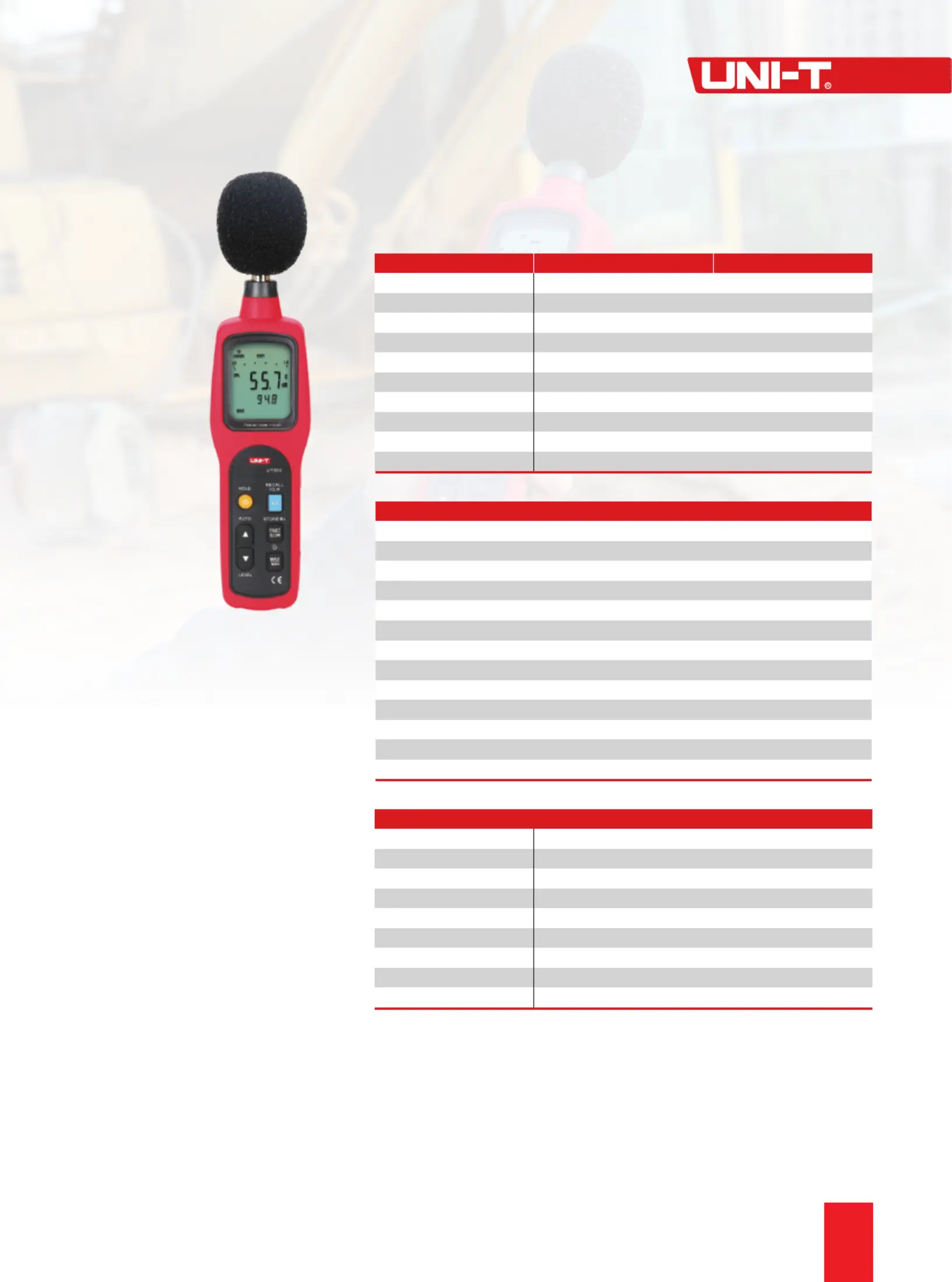 Olvassa el alább 📖 a magyar nyelvű használati útmutatót Uni-T UT352 (1 oldal) a Hangszintmérő kategóriában. Ezt az útmutatót 23 ember találta hasznosnak és 12 felhasználó értékelte átlagosan 4.7 csillagra