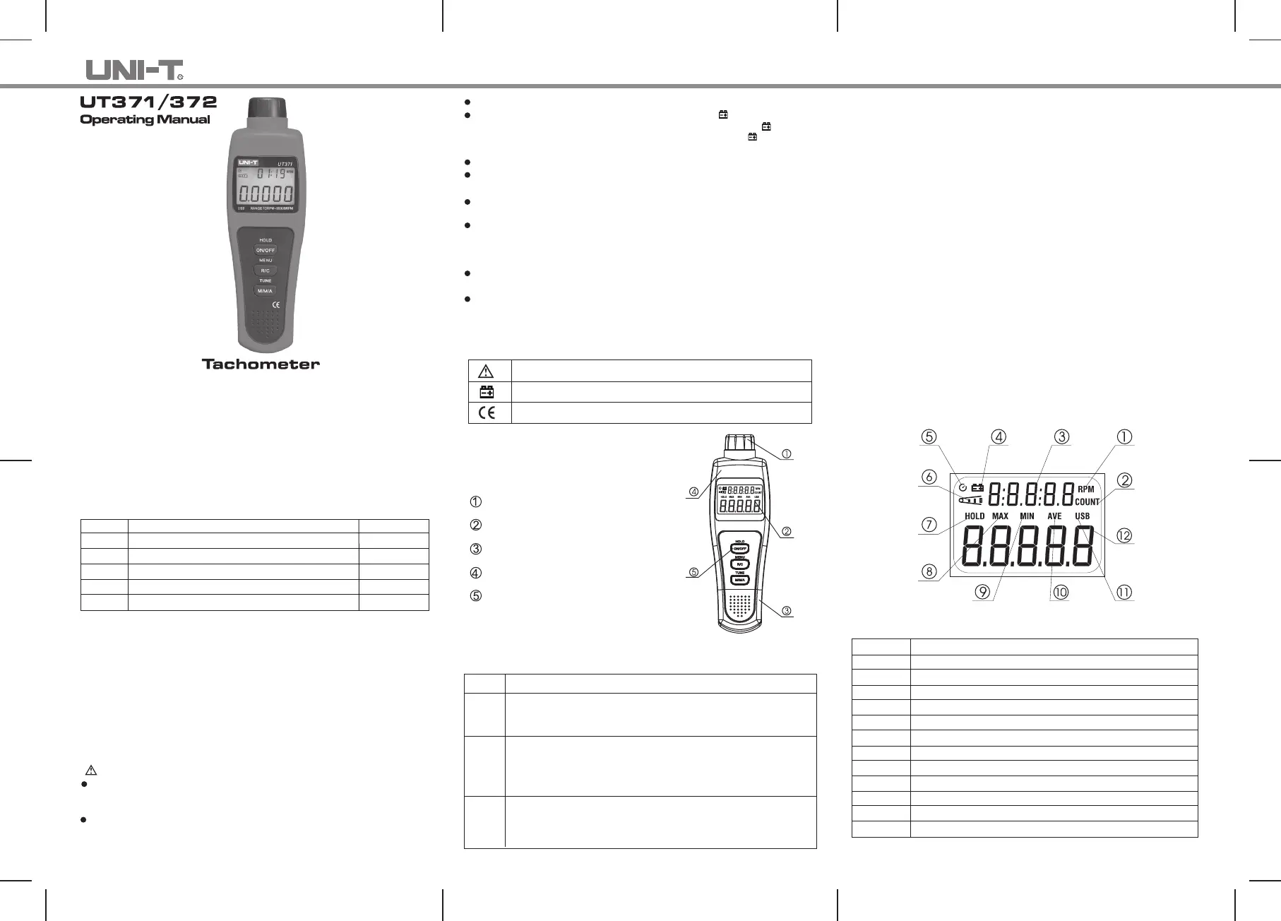 Model UT371/UT372 is a stable, safe and reliable digital non - contact Tachometer.