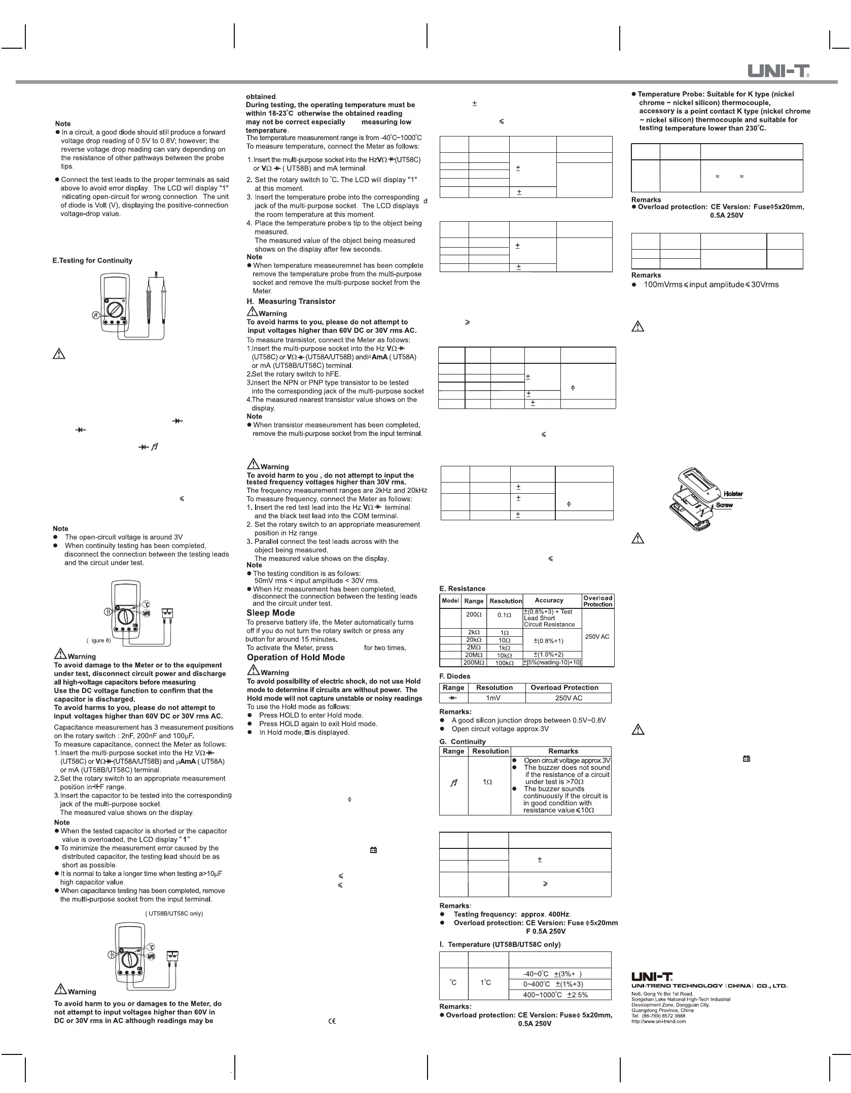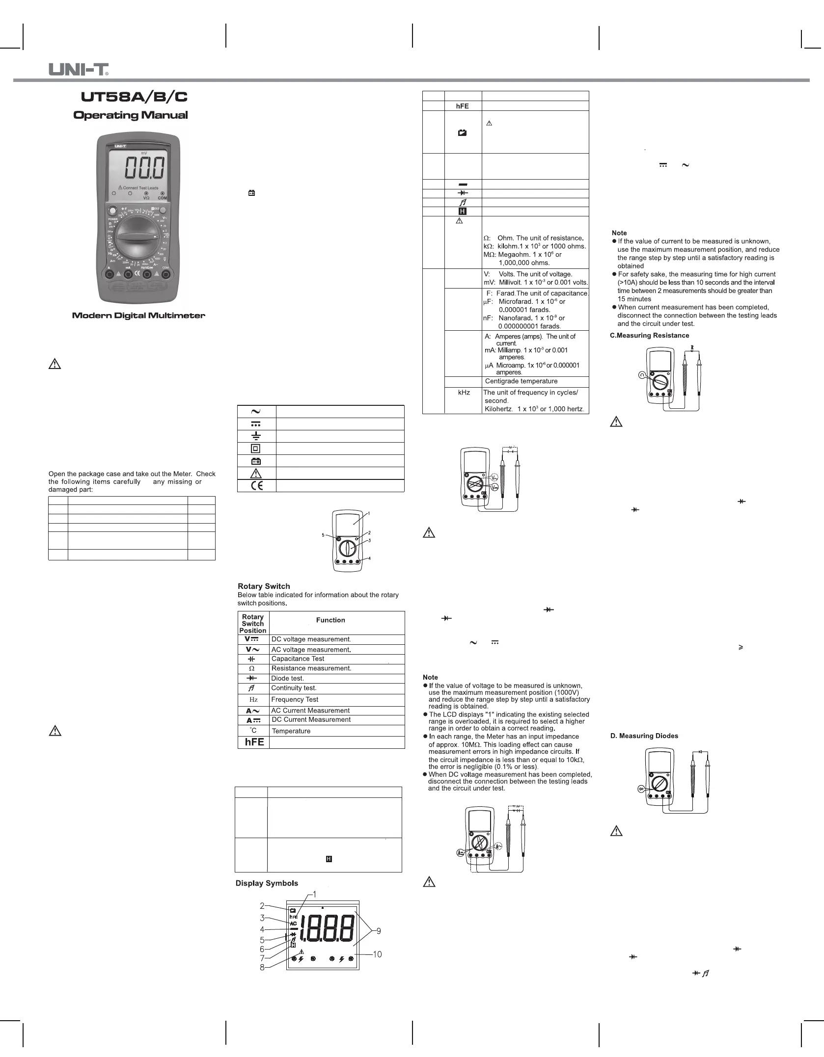Olvassa el alább 📖 a magyar nyelvű használati útmutatót Uni-T UT58C (2 oldal) a multiméter kategóriában. Ezt az útmutatót 12 ember találta hasznosnak és 6.5 felhasználó értékelte átlagosan 4.6 csillagra