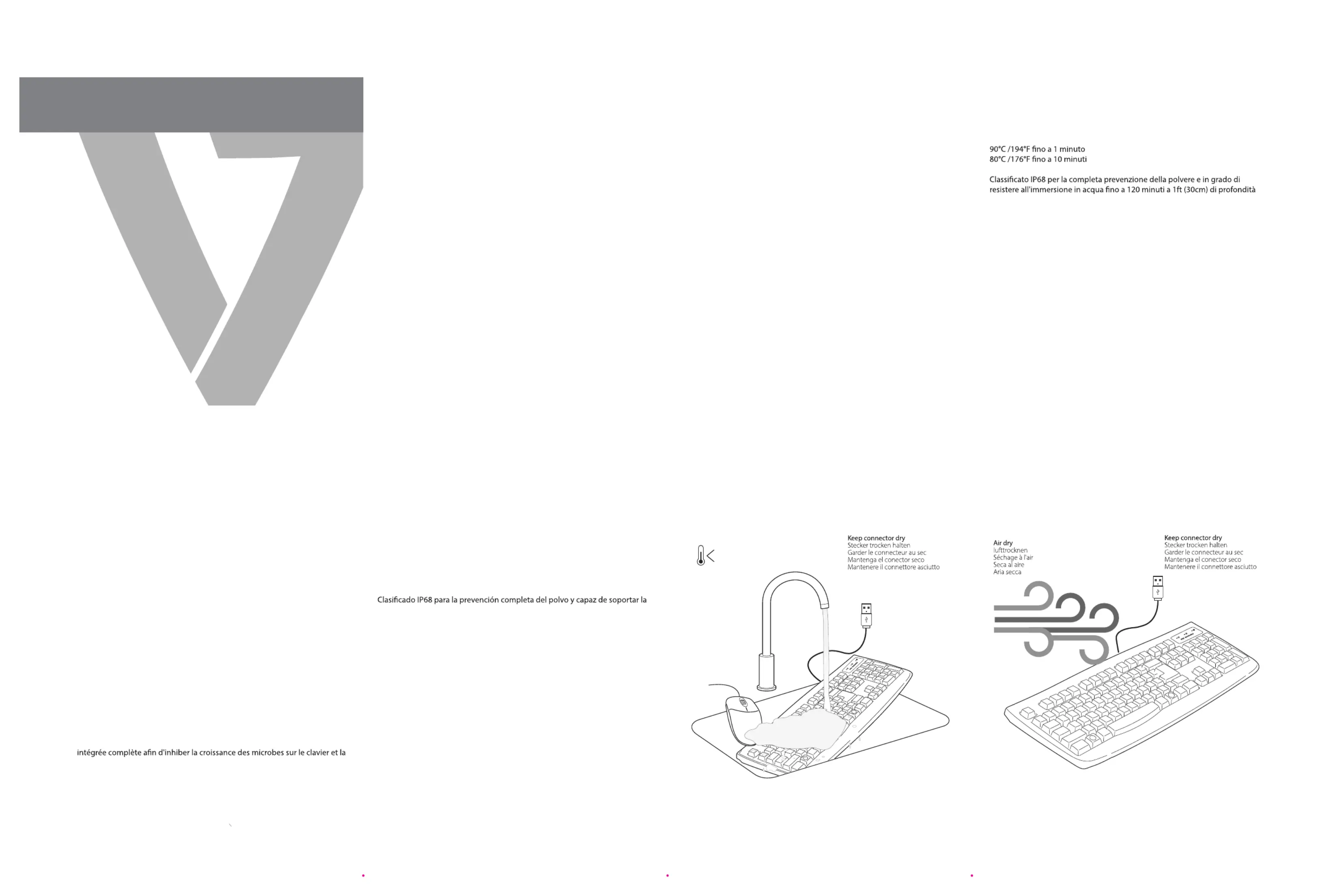El teclado y el ratón lavables V7 IP68 son t tados con un aditivo antimicrobia-ra