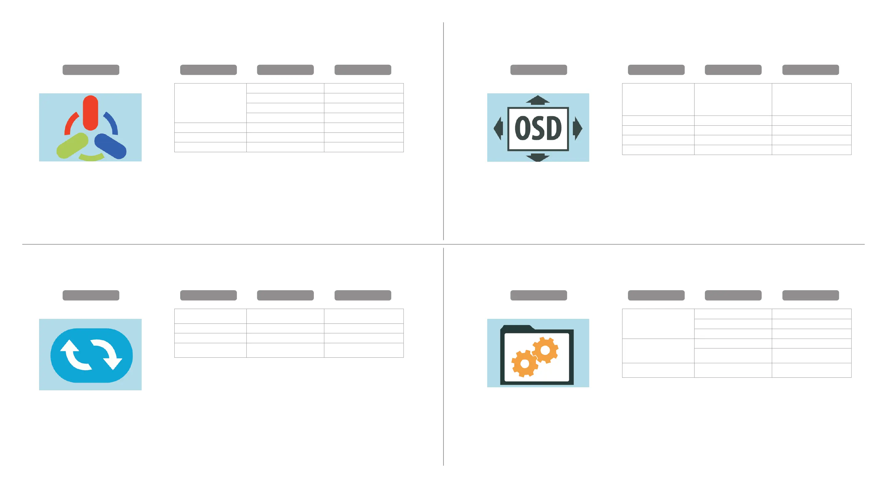 • On-Screen Display (OSD) is easy to use with a simple layout