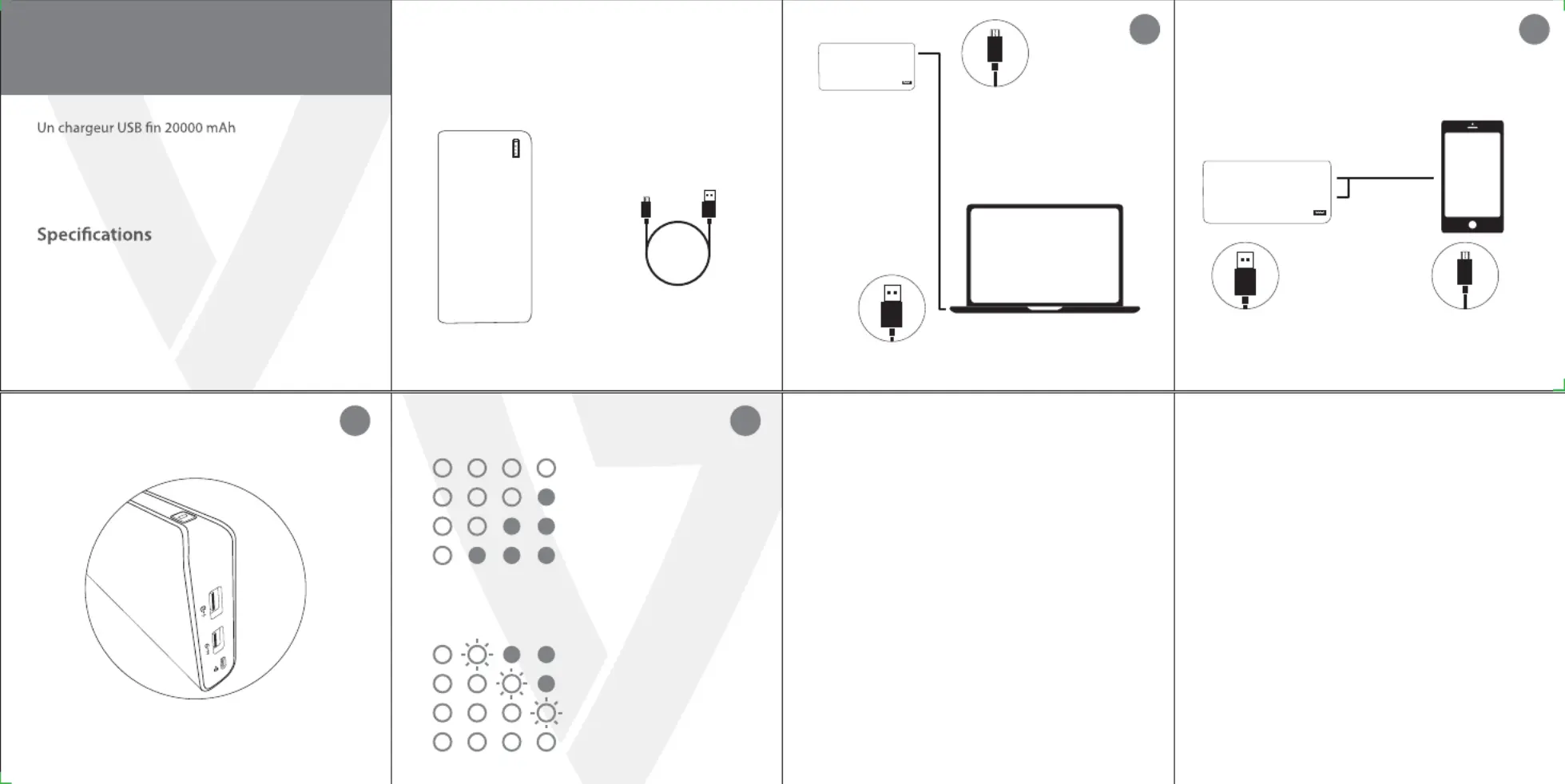 Olvassa el alább 📖 a magyar nyelvű használati útmutatót V7 PB20000L-4N (1 oldal) a power bank kategóriában. Ezt az útmutatót 16 ember találta hasznosnak és 8.5 felhasználó értékelte átlagosan 4.7 csillagra
