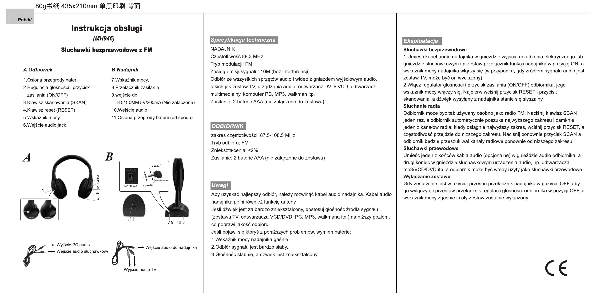 Niniejszym Vakomtek S.A. oświadcza, że Bezprzewodowe Słuchawki MH946 jest zgodna z