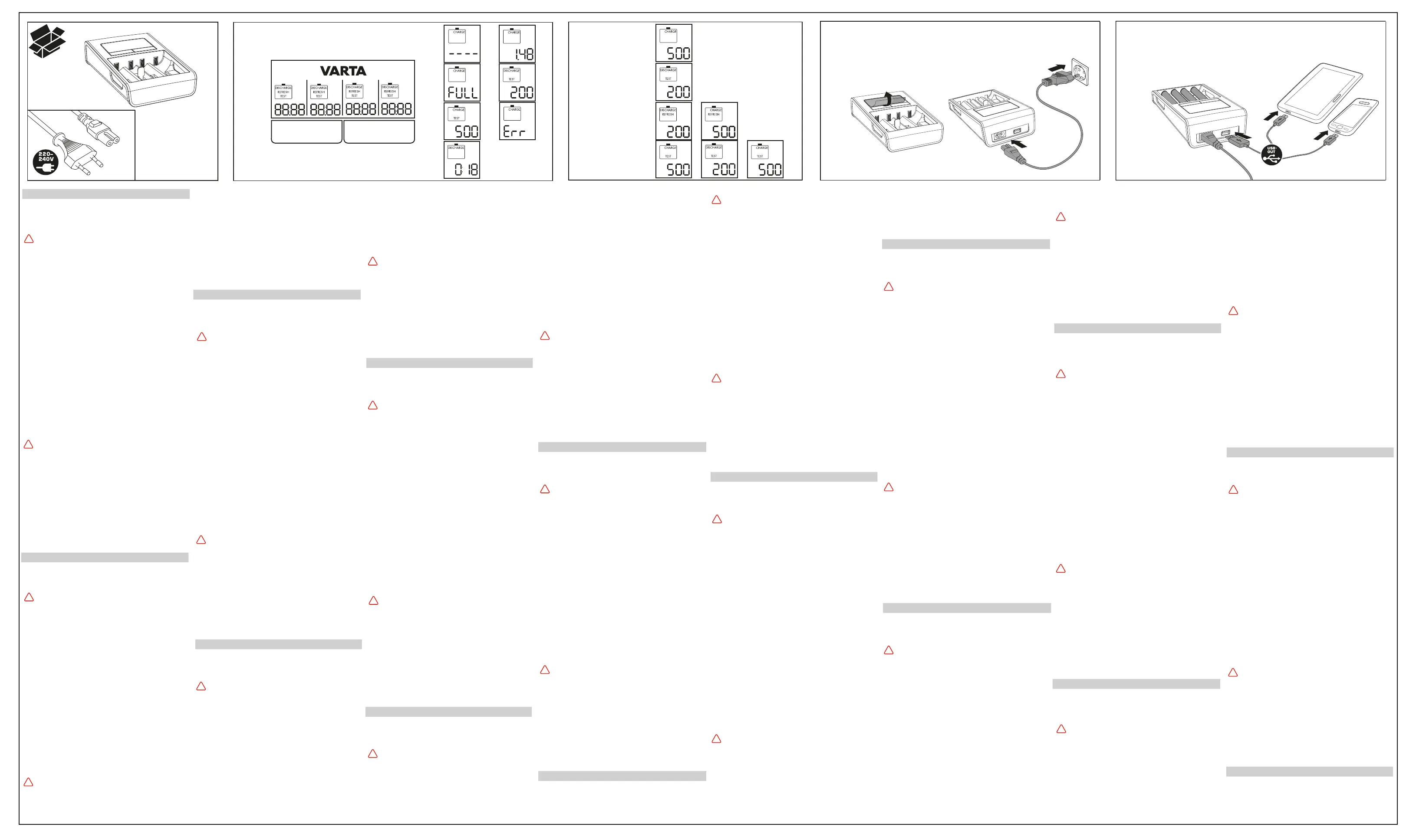 Olvassa el alább 📖 a magyar nyelvű használati útmutatót Varta LCD Dual Tech Charger 57676 (3 oldal) a Akkumulátor töltő kategóriában. Ezt az útmutatót 16 ember találta hasznosnak és 5 felhasználó értékelte átlagosan 5.0 csillagra
