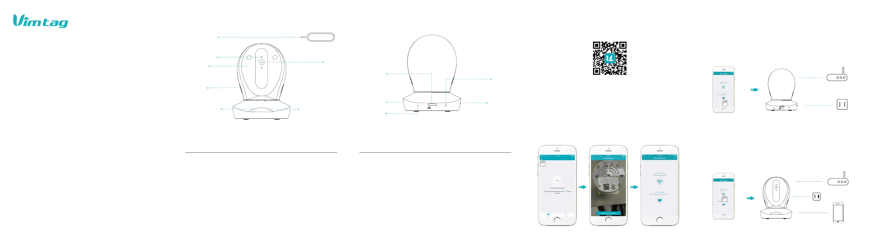 1. Assemble the camera and connect to power, download the Vimtag APP, then