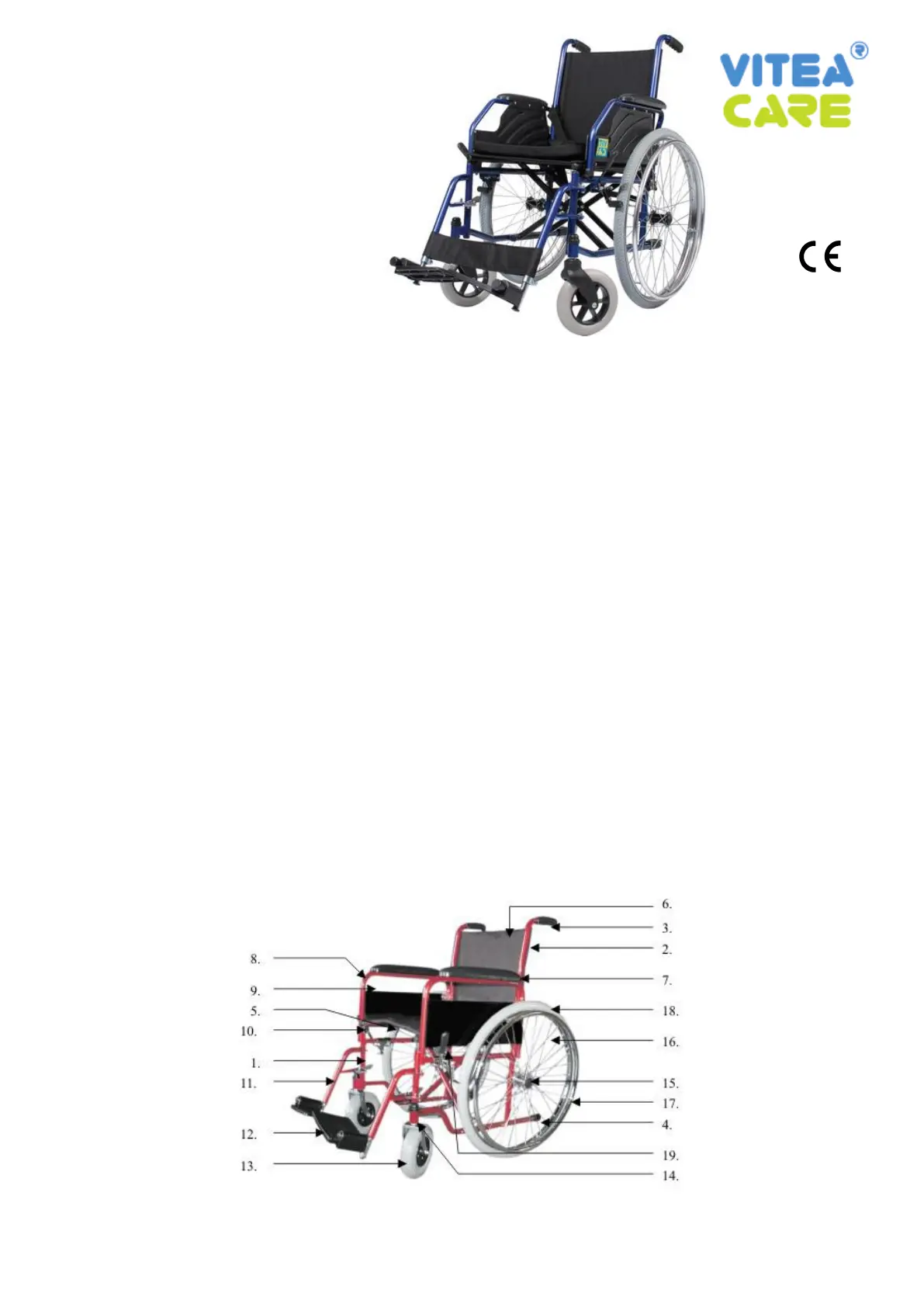 Olvassa el alább 📖 a magyar nyelvű használati útmutatót Vitea Care VCWK42 (7 oldal) a Kerekesszék kategóriában. Ezt az útmutatót 20 ember találta hasznosnak és 10.5 felhasználó értékelte átlagosan 4.3 csillagra
