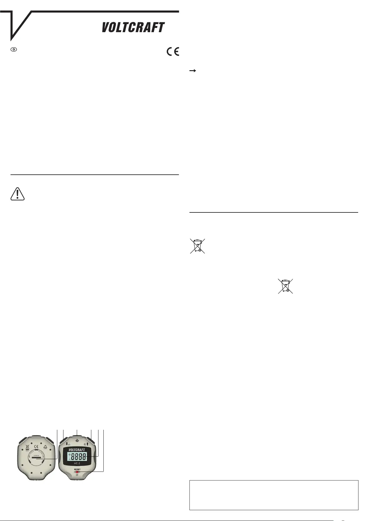 Olvassa el alább 📖 a magyar nyelvű használati útmutatót Voltcraft HC-2 (4 oldal) a Mérőberendezések kategóriában. Ezt az útmutatót 15 ember találta hasznosnak és 8 felhasználó értékelte átlagosan 5.0 csillagra