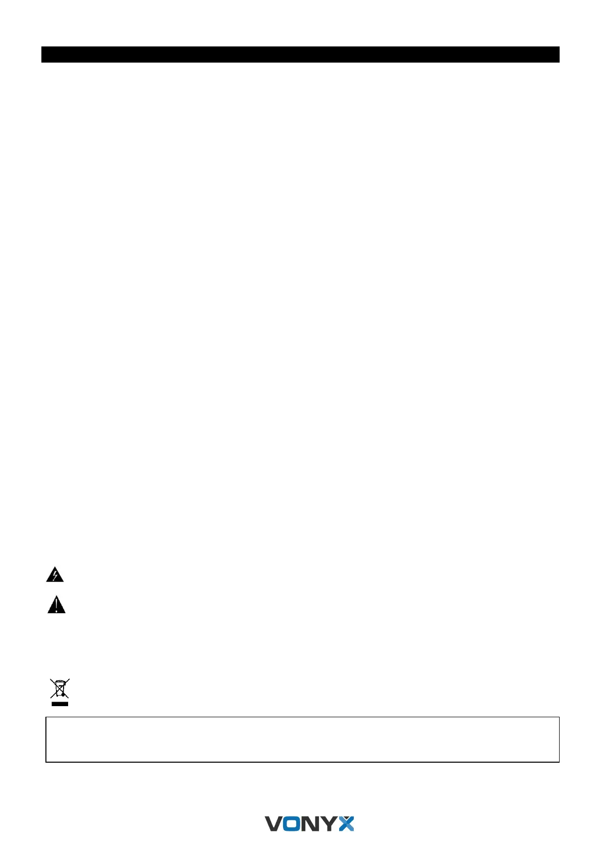warnings contained in this manual. Vonyx cannot be held responsible for personal injuries caused by a disrespect of the safety