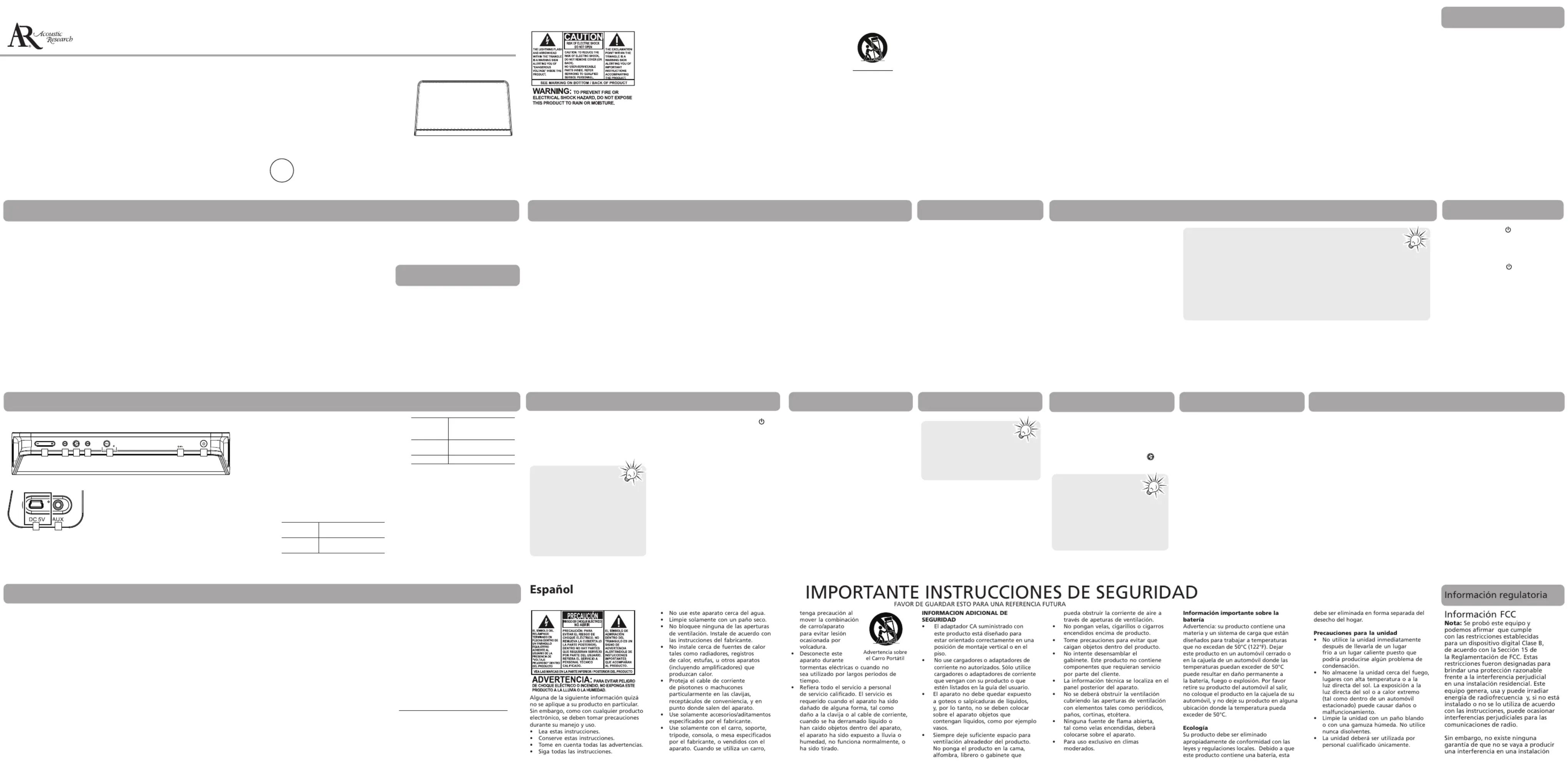 Gracias por comprar un producto Acoustic Research. Nos enorgullece la calidad y fi abilidad de todos nuestros productos electrónicos, pero si alguna vez necesita servicios