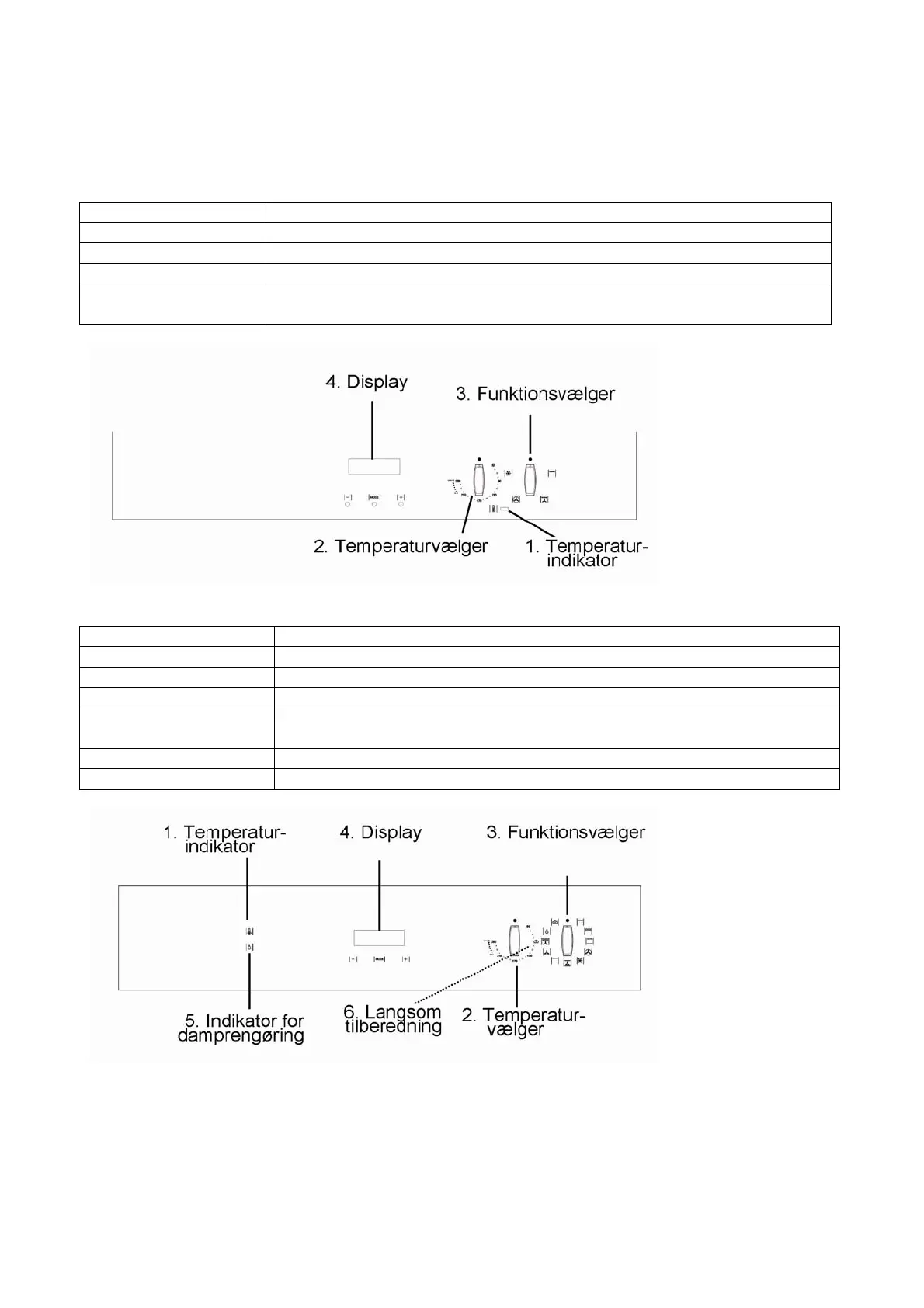1. Temperaturindikator Lyser, mens ovnen varmer op til den ønskede temperatur, hvorefter den slukker.