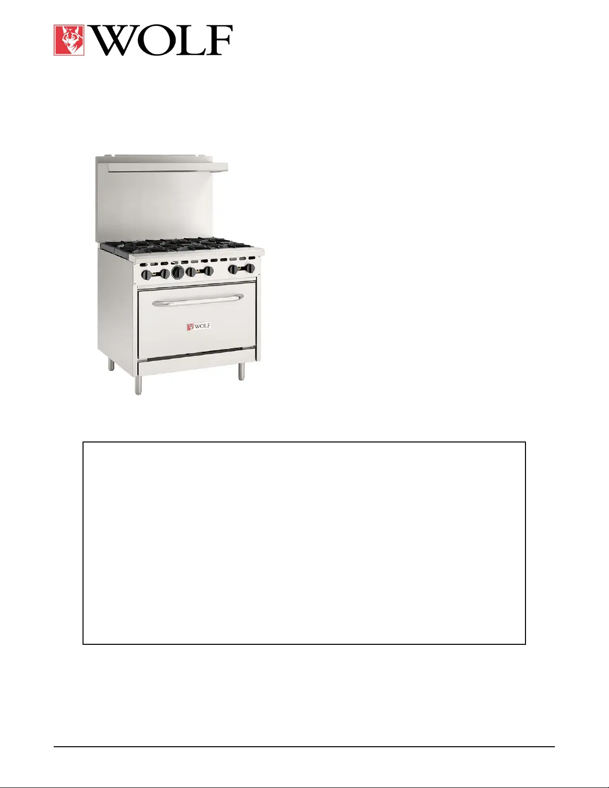 WOLF IS A DIVISION OF ITW FOOD EQUIPMENT GROUP, LLC 3600 NORTH POINT BLVD., BALTIMORE, MD 21222