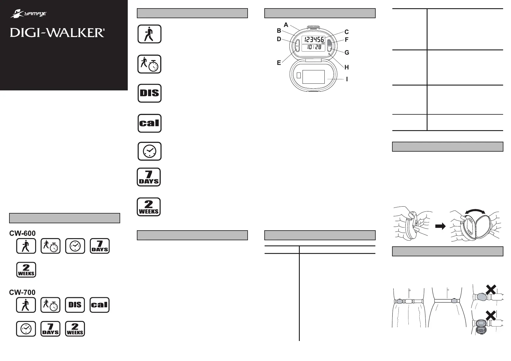 Olvassa el alább 📖 a magyar nyelvű használati útmutatót Yamax CW-600 (2 oldal) a Lépésszámláló kategóriában. Ezt az útmutatót 20 ember találta hasznosnak és 8 felhasználó értékelte átlagosan 4.6 csillagra