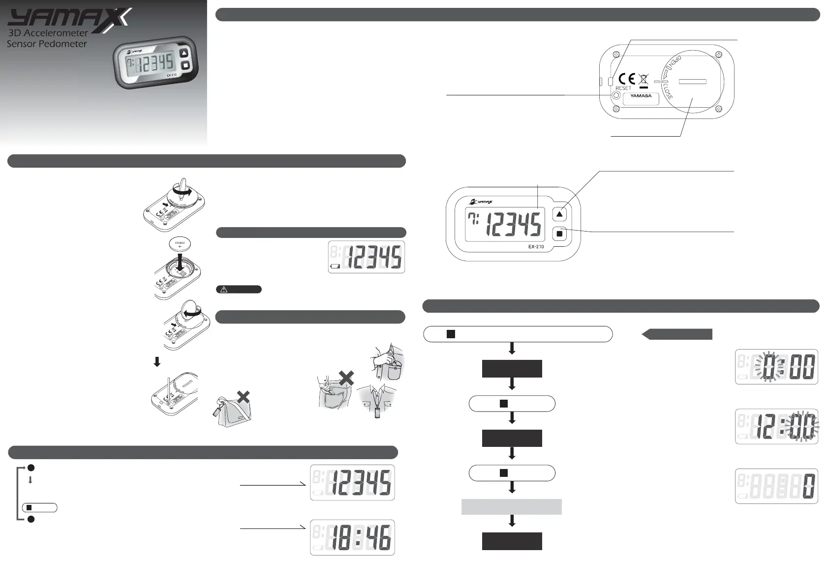 Olvassa el alább 📖 a magyar nyelvű használati útmutatót Yamax EX-210 (4 oldal) a Lépésszámláló kategóriában. Ezt az útmutatót 17 ember találta hasznosnak és 9 felhasználó értékelte átlagosan 5.0 csillagra