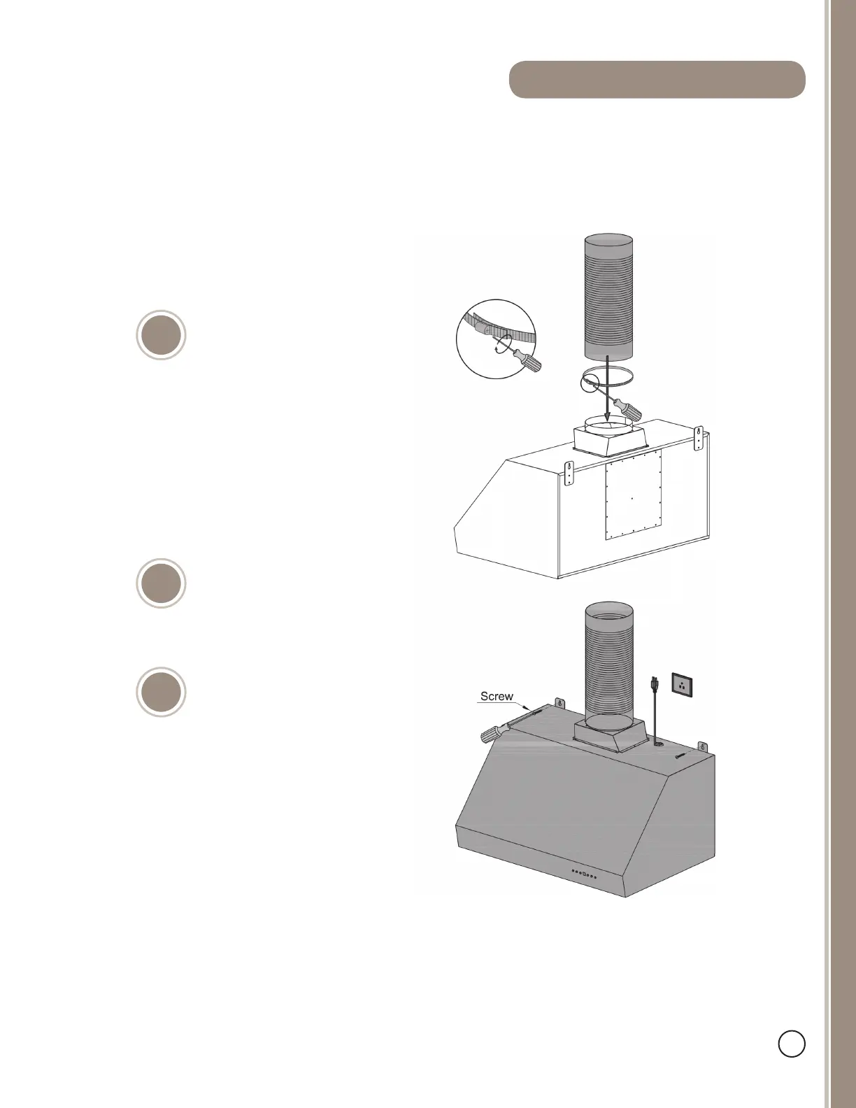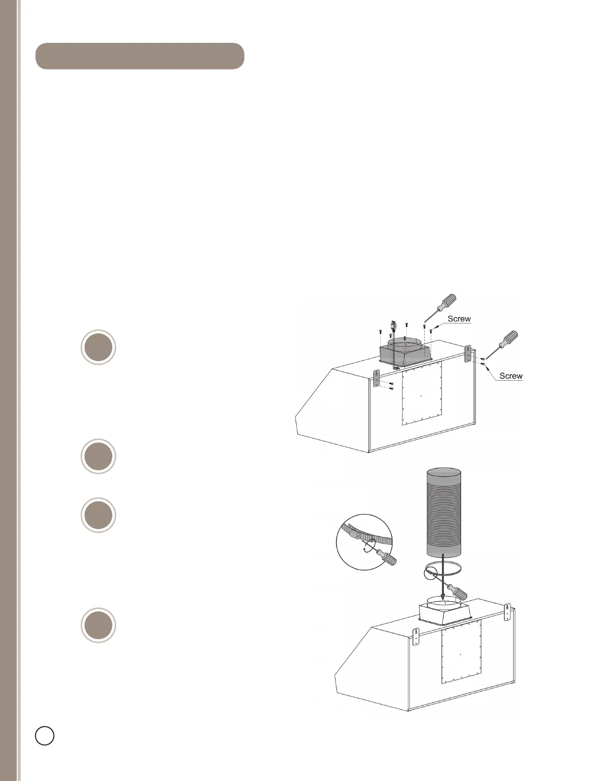 ► Puncture the knockout holes (for mounting under the cabinet) on the hood.